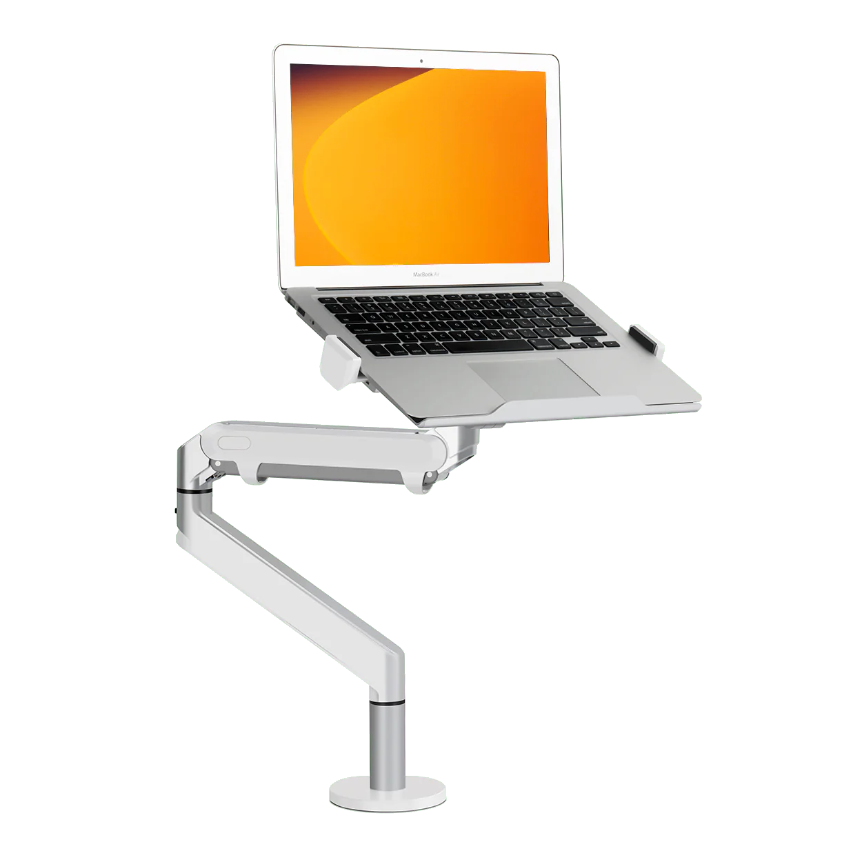 Geef je werkplek een strakke en moderne uitstraling met de slanke zilveren afwerking die bij elke opstelling past. De premium aluminium constructie biedt sterke ondersteuning voor grotere laptops, terwijl het geïntegreerde kabelbeheer houdt alles netjes. De bureauklem montage houdt de arm rotsvast tijdens dagelijks gebruik.