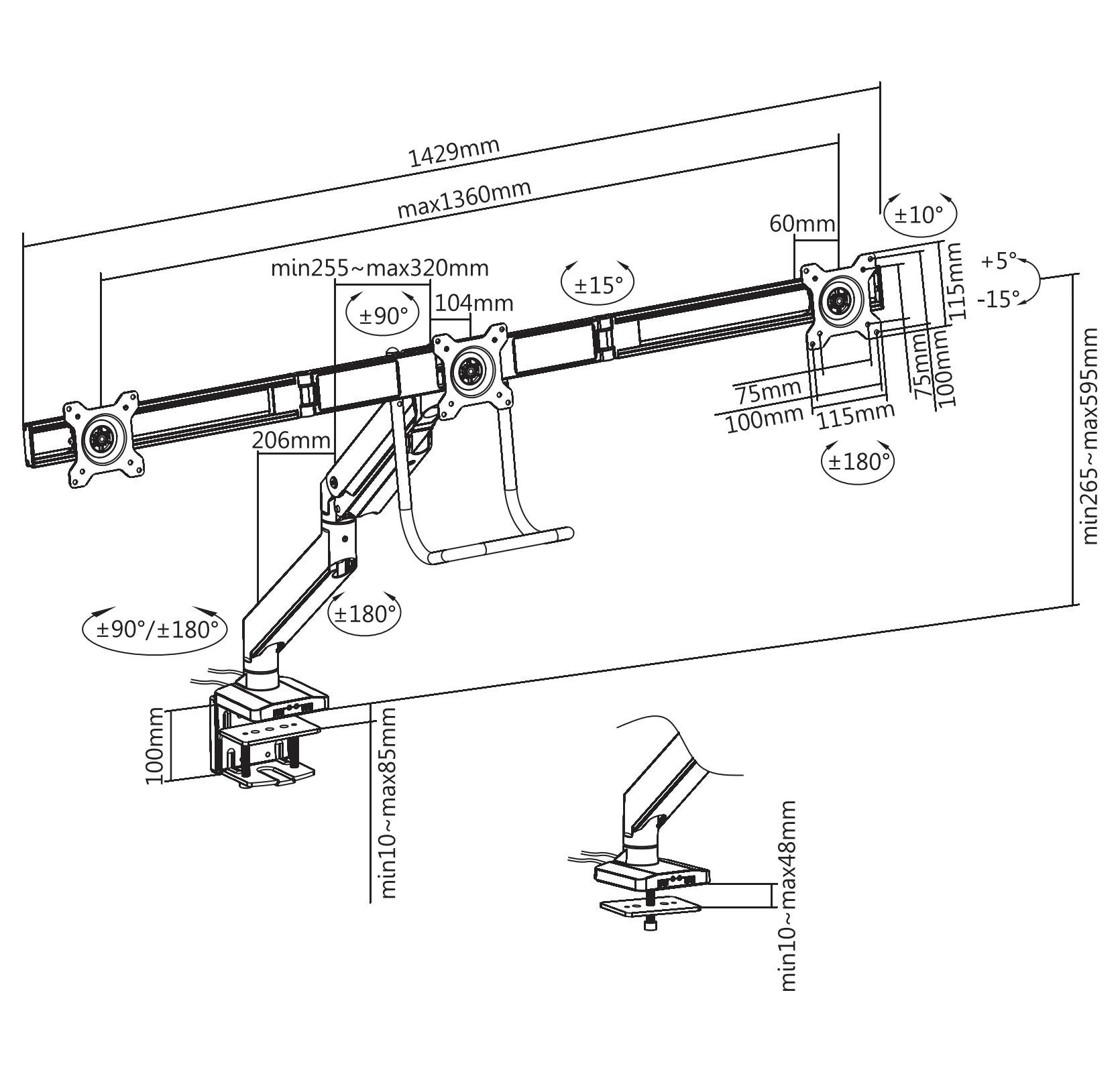 Max. desk thickness: 8.5 cm (clamp) | 4,8 cm (grommet)