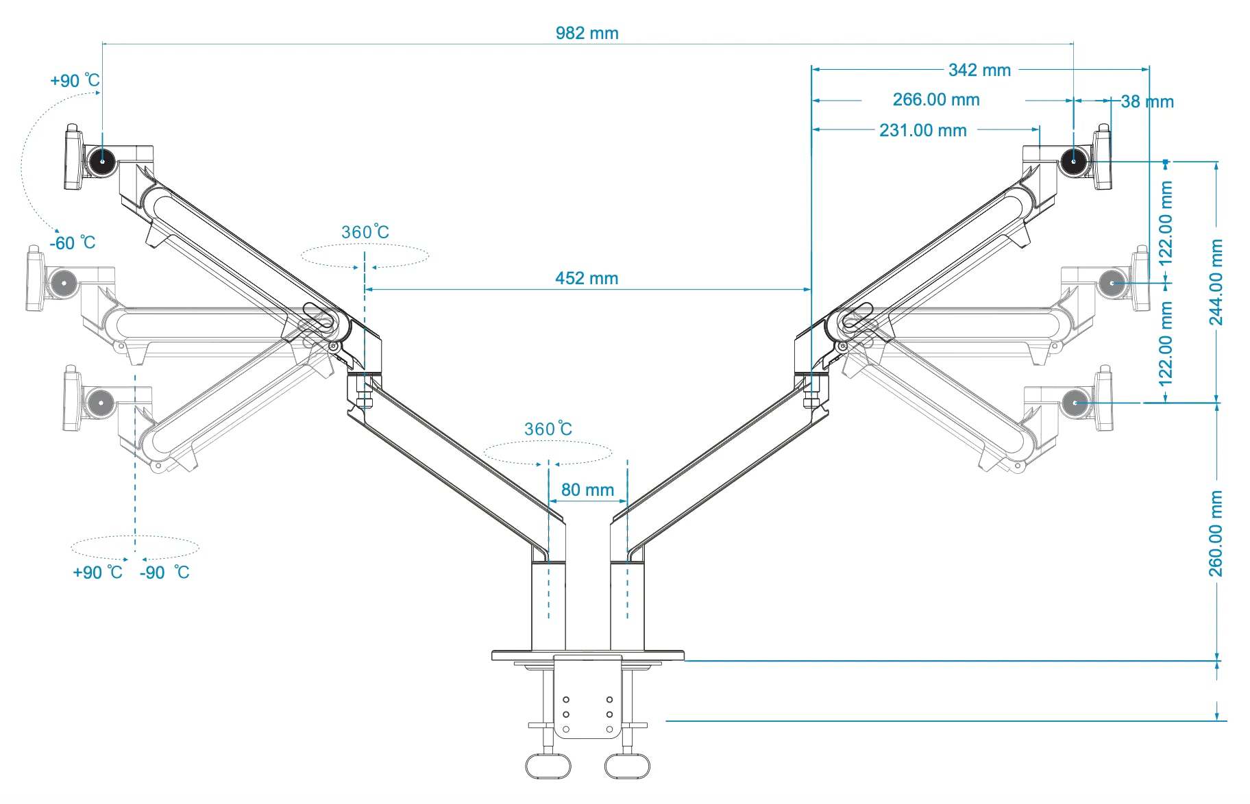 Verander je bureau in een hoogwaardige, ergonomische werkplek met de Alberenz® Dual Monitor Arm.